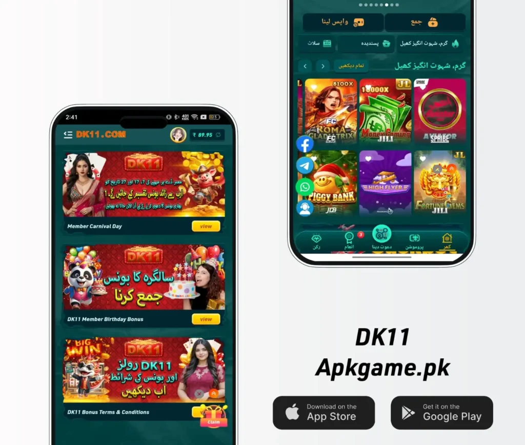 DK11 is one of the leading game apps these days in Pakistan and worldwide for its latest features. It is a combination of different games like card games, poker, slot games, sports bebetting and blackjack. Users get a chance to challenge their skills and compete with real players to win games and rewards. However, these games are not solely skill-based; some games are luck-based as well. Also, it is designed in a way that both seasonal players and newcomers can play without any confusion due to its simple layout.